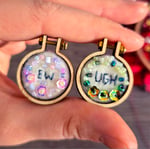 The pins measure 2.5cm in diameter, and are glued together with E6000 glue. They are finished with UV resin on the back, to secure the metal bpin backing.